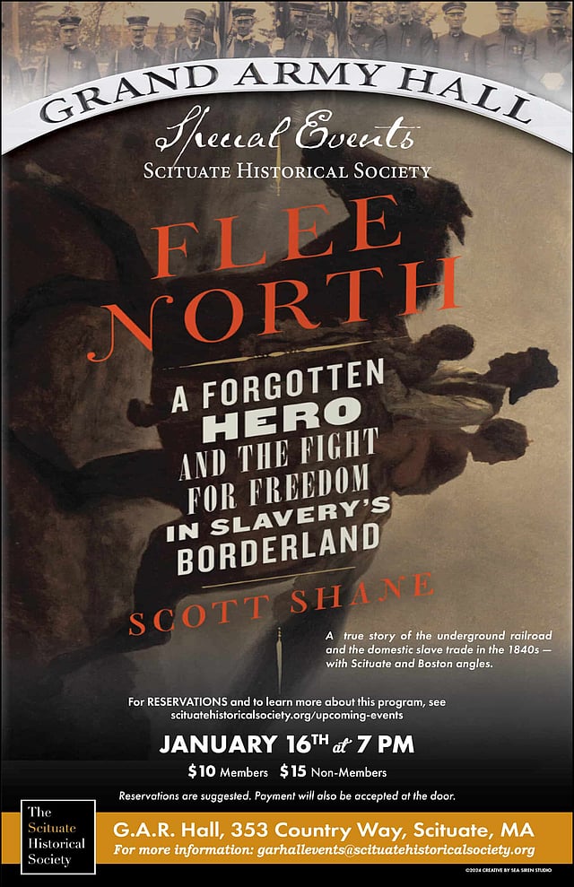 The Scituate Historical Society invites you to a captivating evening with author Scott G. Dawson as he discusses his book, Flee North. This compelling work chronicles the life of John Parker, a fearless Underground Railroad conductor and New England sea captain, who risked everything to help others find freedom.