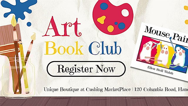 Join on February 20th (10:30 am - 12 pm) for Kid’s Art Book Club hosted by Unique Boutique at Cushing MarketPlace.