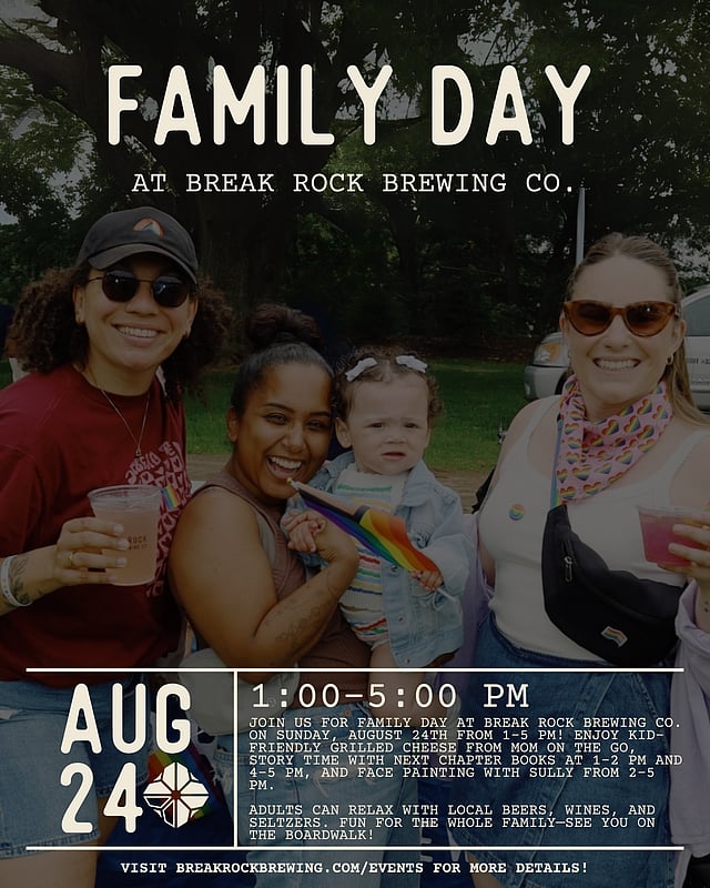 FAMILY DAY AT BREAK ROCK BREWING CO. | SUNDAY, AUGUST 24TH | 1:00–5:00 PM A full afternoon of fun for all ages—join us on the boardwalk for great food, family activities, and local brews!
