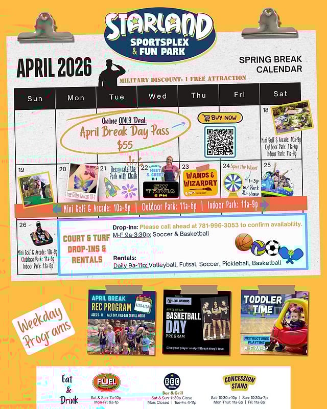Address: Starland Sportsplex & Fun Park 637 Washington St, Hanover, MA 02339