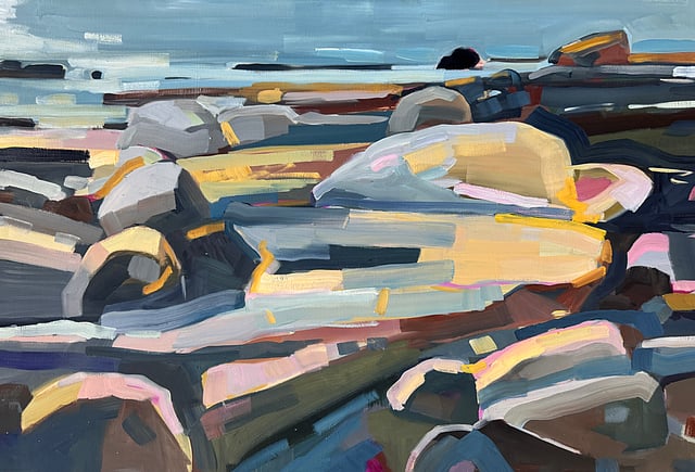 Mallie Loring Pratt works from observation and memory to explore the sensory and emotional experience of place. Her paintings often serve as records of change: in light, in land, and in ourselves. The works on display will be "off-season" landscapes that capture the muted beauty, subtle transitions, and overlooked moments that define the coast’s quieter months. Three of her large-scale paintings are currently on display at the Center for Maine Contemporary Art’s Biennial. She co-runs a studio collective in Ipswich, MA.