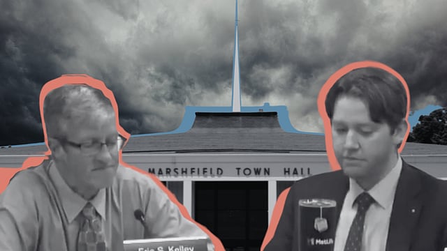 They were the entire board. Days earlier, member Trish Simpson had resigned less than one year after getting elected. One of two interim town administrators had also stepped down suddenly. What remained of Marshfield’s elected leadership were two men who did not agree on the central question facing the town, sitting across the same table with no way to move forward without the other. A tie vote meant no action at all.